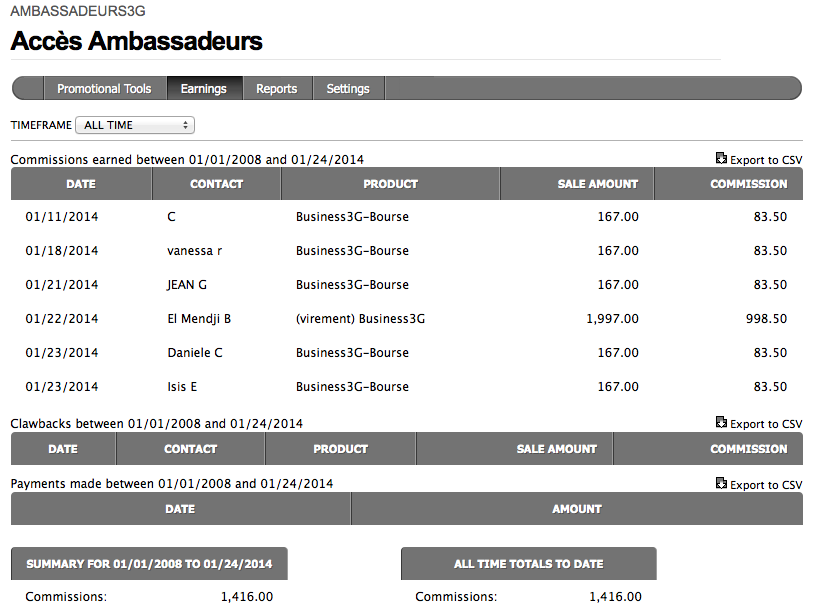 Voici un extrait du tableau des commissions potentiellement perçues à ce jour.